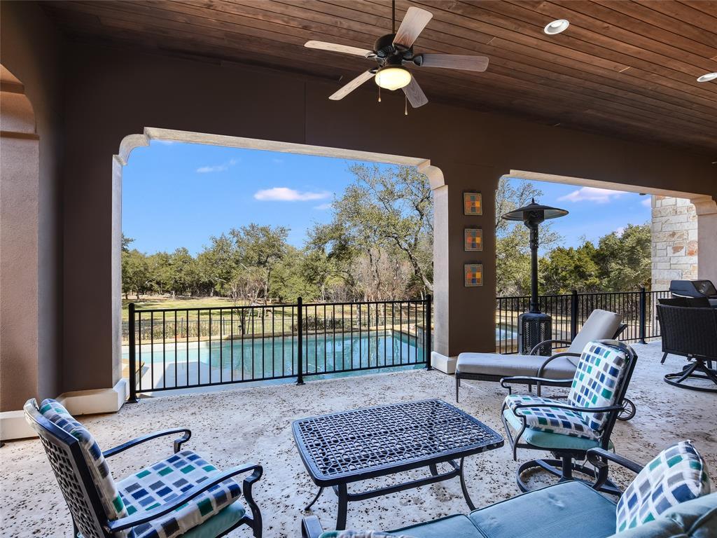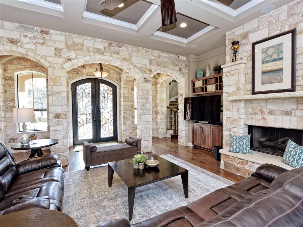 Set among heritage trees and native limestone, this custom residence blends craftsmanship with Hill Country character. Enter through a welcoming foyer into open-concept living anchored by stone accents and tailored millwork. The main-level bedroom wing offers convenience and separation, while the upstairs flex/game room—with wet bar and balcony—adds a versatile space for media, hobbies, or guests.