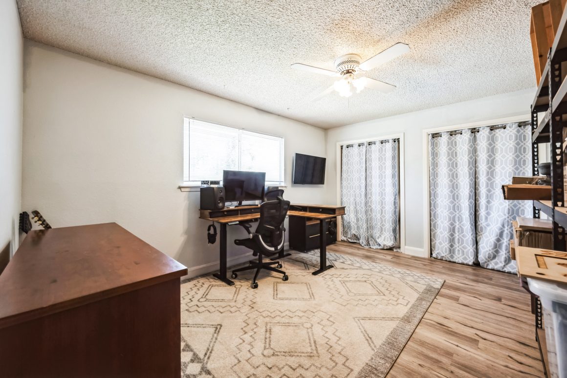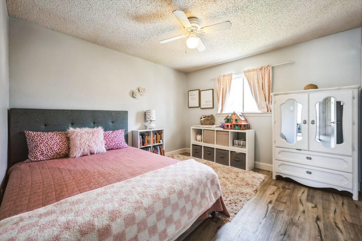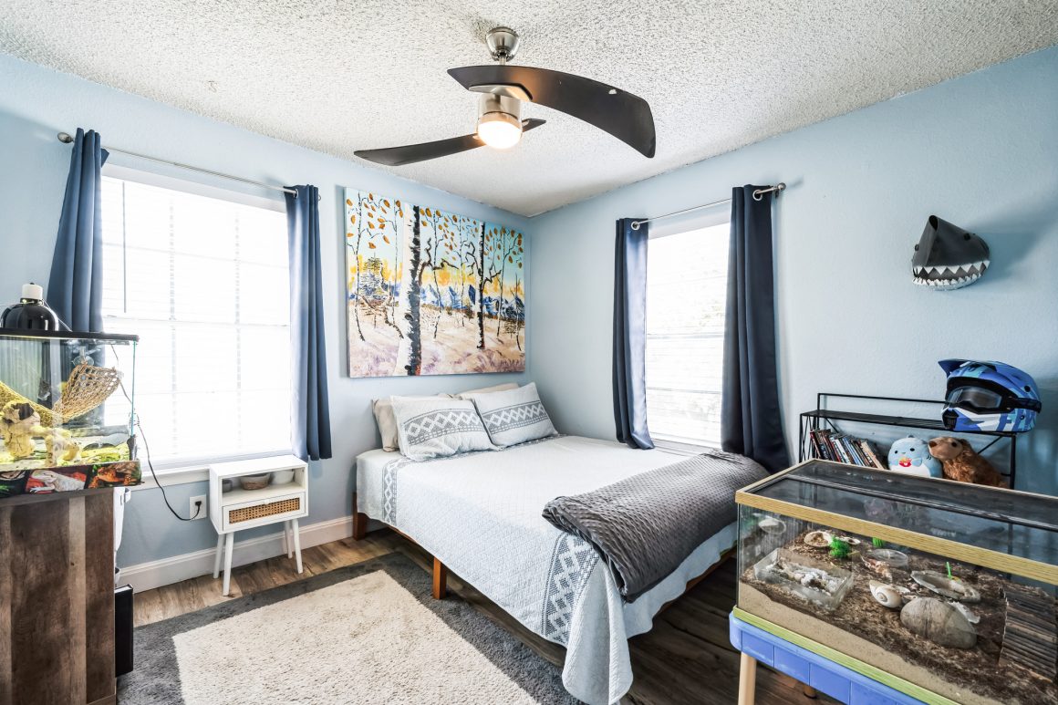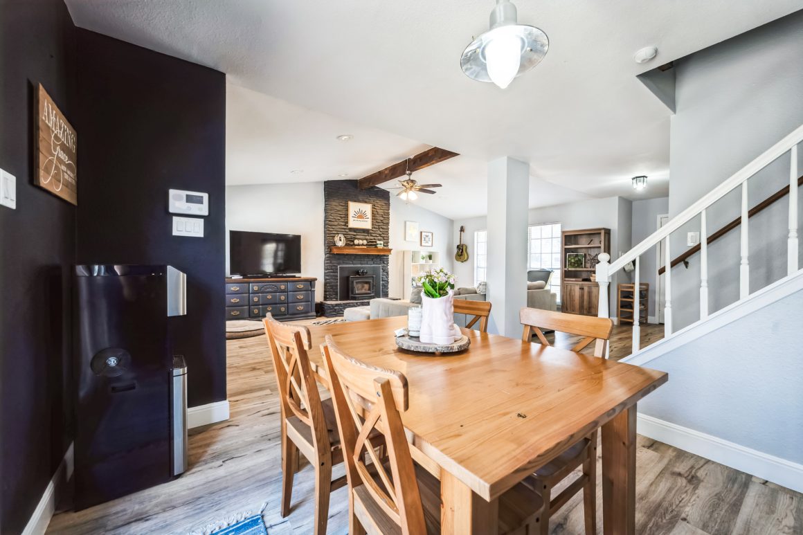 - Four bedrooms (three upstairs and one loft-style flex bedroom downstairs)