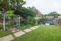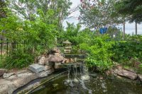 One of the best features of this home is the lovely koi pond in the backyard with gorgeous flowers and fish! Speaking of the backyard — it’s HUGE! There is lots of room back here and it’s complete with multiple entertaining areas, lush landscaping, and grassy areas for playing too!