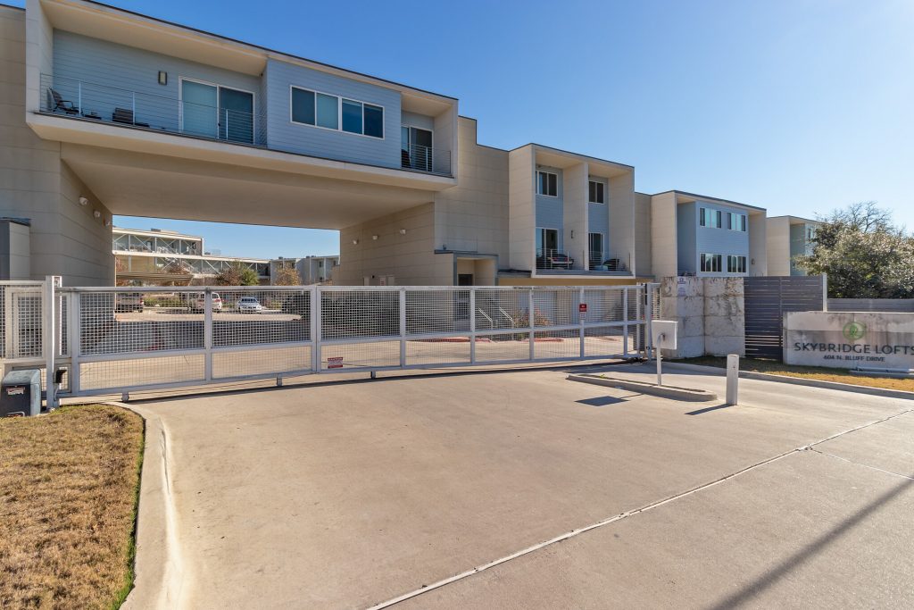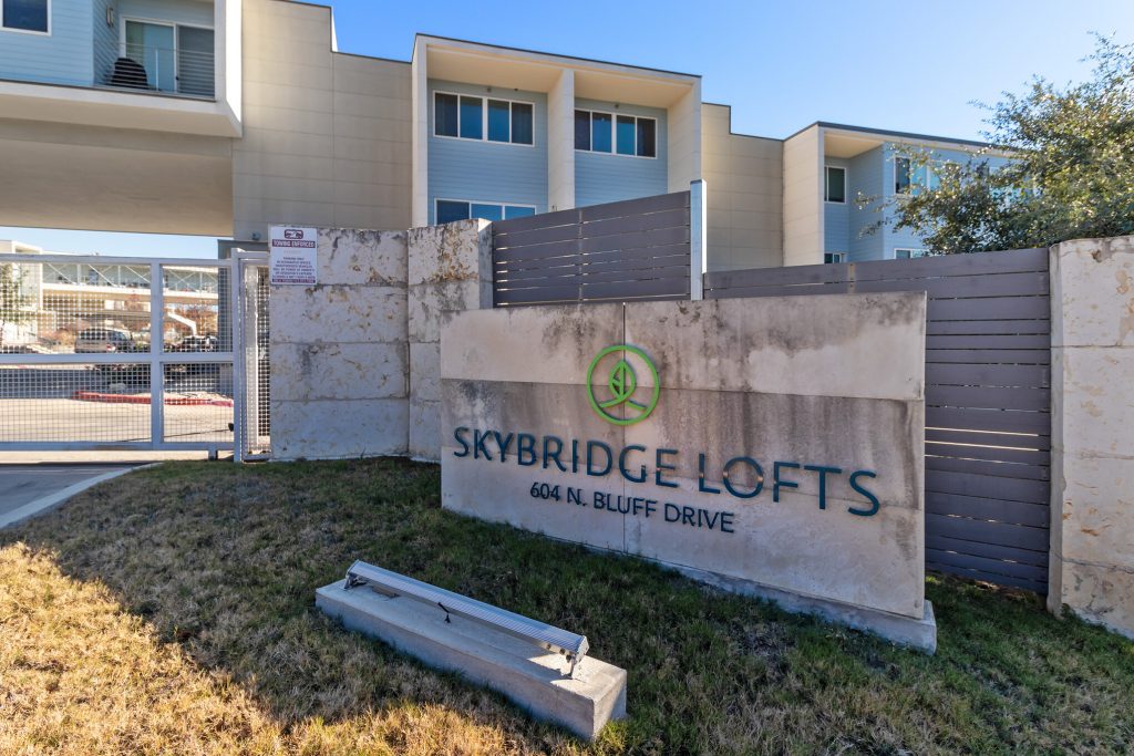 Beautiful, modern 2 bdrm 2.5 bath condo w/ 2 car garage at the desirable Skybridge Lofts! Highly upgraded unit consists of a large, open space area w/ high ceilings & an abundance of natural light and tons of storage — ideal for creating a relaxing life or work environment. Updates include: Interior HVAC, lighting, sound insulation, upgraded appliances & a gorgeous master bath w/ double vanities & frameless walk-in shower! Amenities include 2 dog parks w/ off-leash area, walking/jogging trail, gym, pool, grill & close proximity to I-35/Airport/DT. HOA includes cable/internet. SOLD with multiple offers!