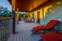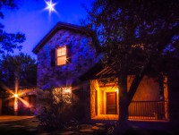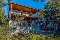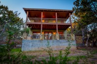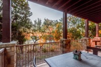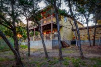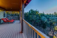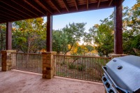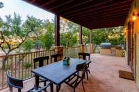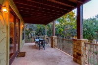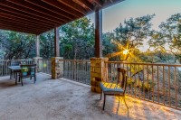 - Two enormous covered patios — one with views of Lake Travis, the other below the treetops with a built-in outdoor grill that conveys