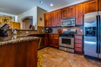 - Gorgeous granite kitchen with undermount sink, stainless steel appliances, and high-end cabinetry