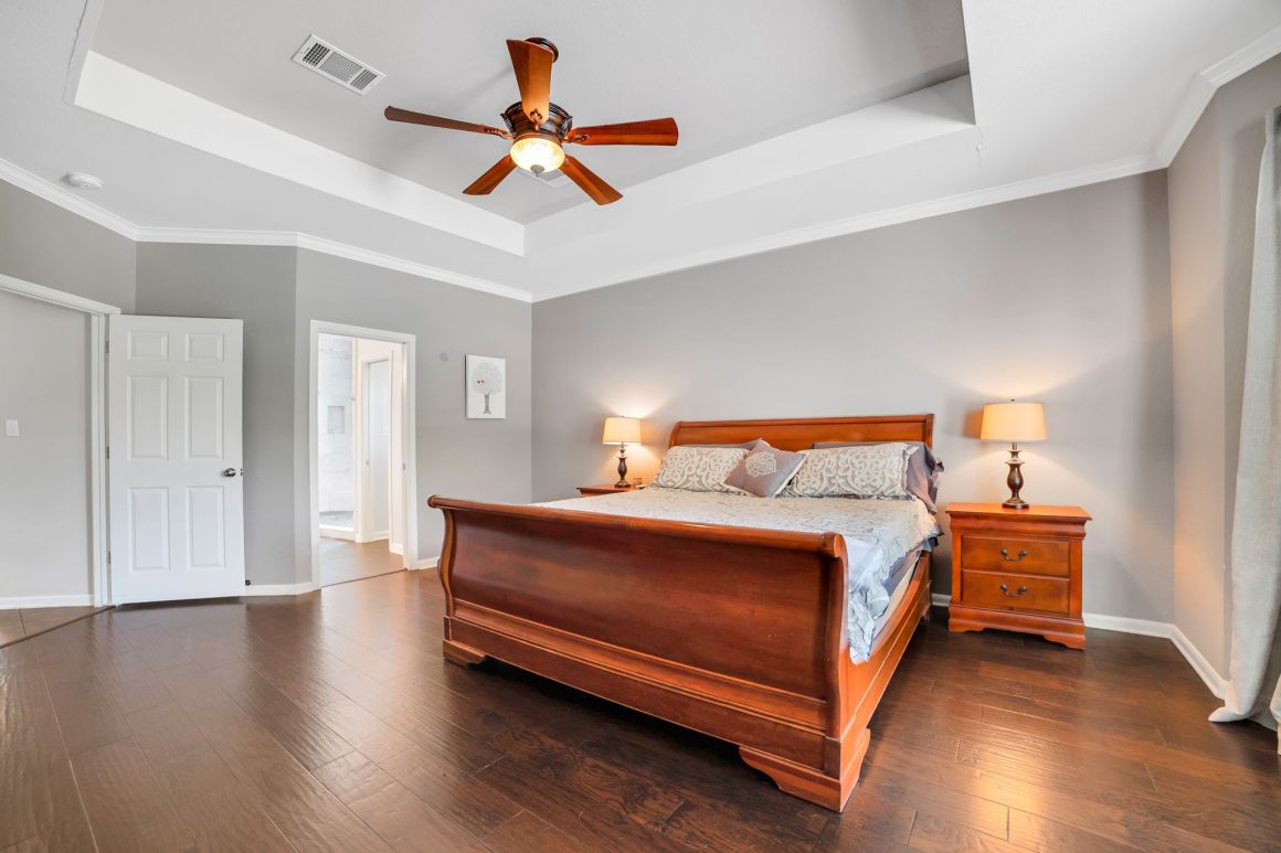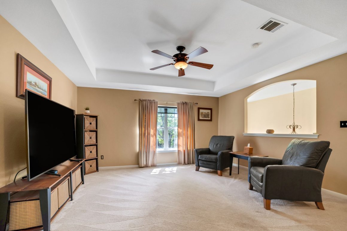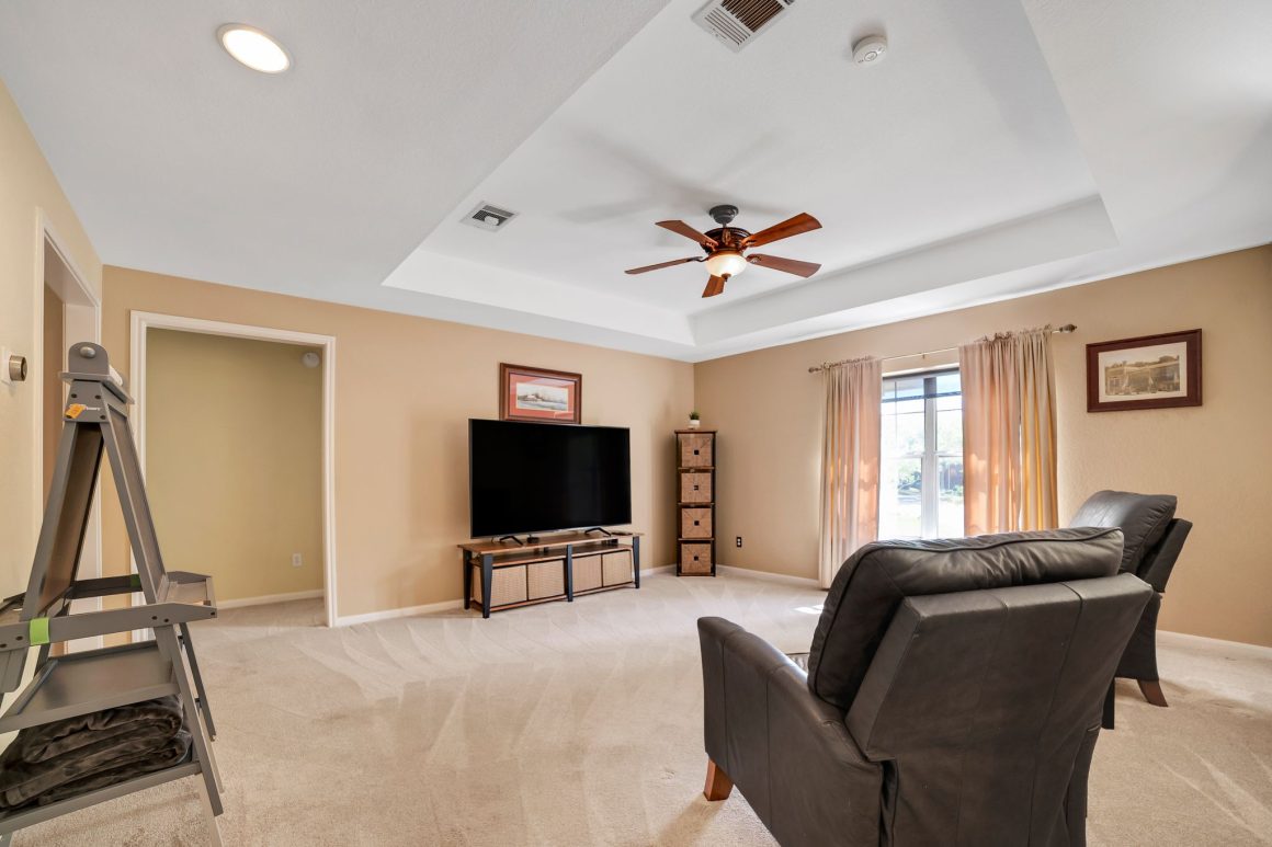 Natural light floods the two-story living area, creating an ambiance of warmth and tranquility. Upstairs, a versatile game room provides endless opportunities for recreation and leisure. Retreat to the luxurious master suite, featuring designer fixtures and an oversized shower for a spa-like experience.