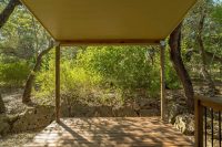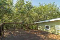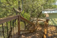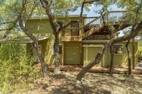 The outdoor space of this home is serene and beautiful — multiple decks and entertaining areas (the upper deck has partial views of Lake Travis),  ample trees offering shade and natural landscaping to enjoy.
