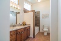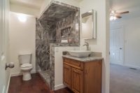Master Bathroom upgrades include the demolition and replacement of the tile flooring, replacement of the countertop with a granite double vanity with undermount ceramic sinks, demolition and remodel of the master shower tile, shower floor tile, and bench seat.